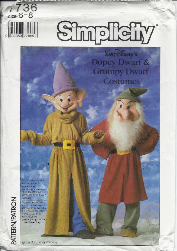 Amazon Com Simplicity Adult Boys And Girls Dopey And Grumpy Dwarf Costume Sewing Pattern 7736 Arts Crafts Sewing